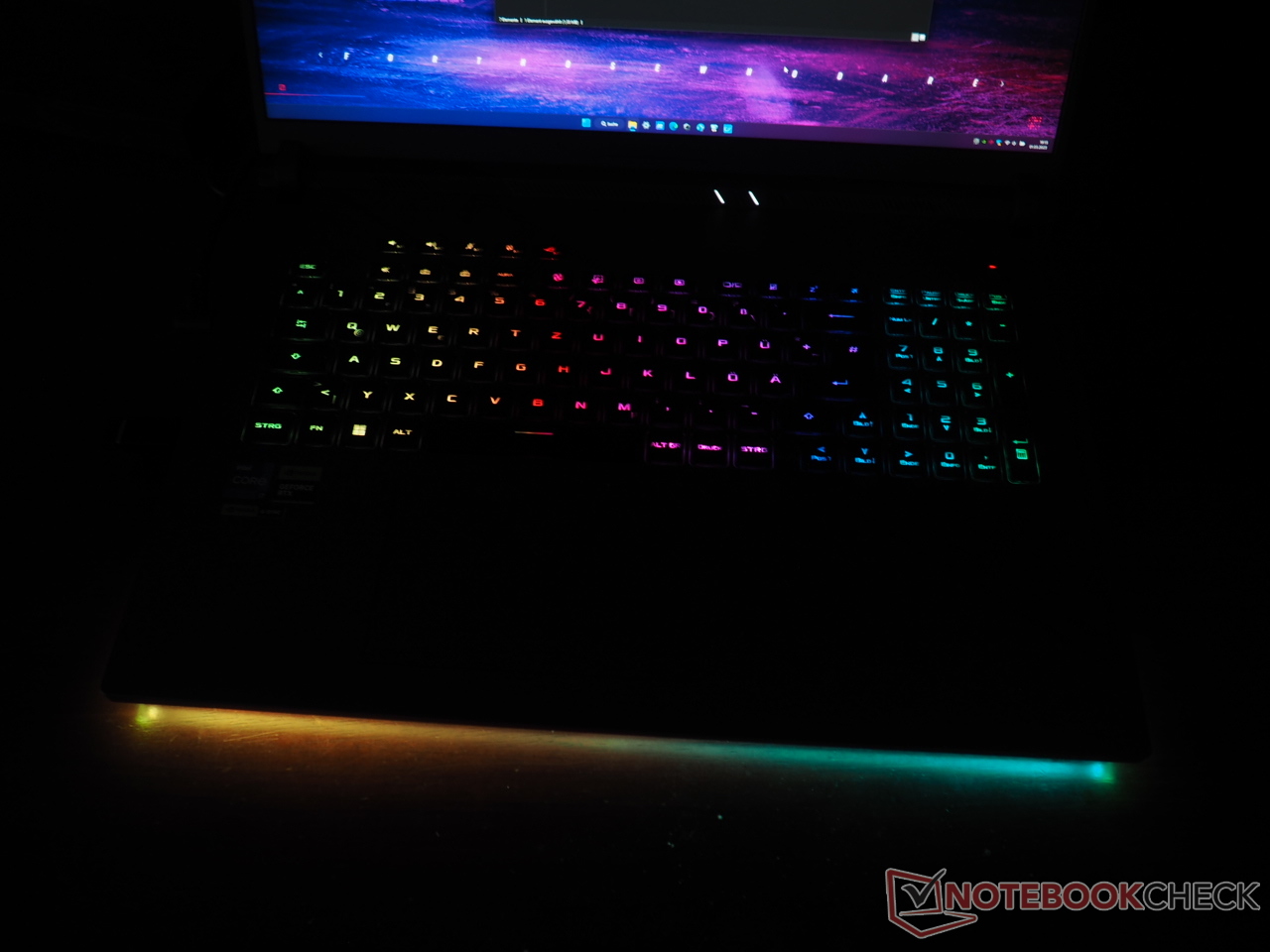La carcasa de la unidad base muestra algunos signos de debilidad en el área de la estabilidad y es algo que tiene un efecto en la calidad percibida de los dispositivos de entrada (el chasis tiende a traquetear un poco). No obstante, gracias a las generosas características de puerto (incl. Thunderbolt 4), un diseño llamativo, y amplia iluminación (teclado, tira LED en el frontal), los jugones obtienen una plataforma de juego adecuada.