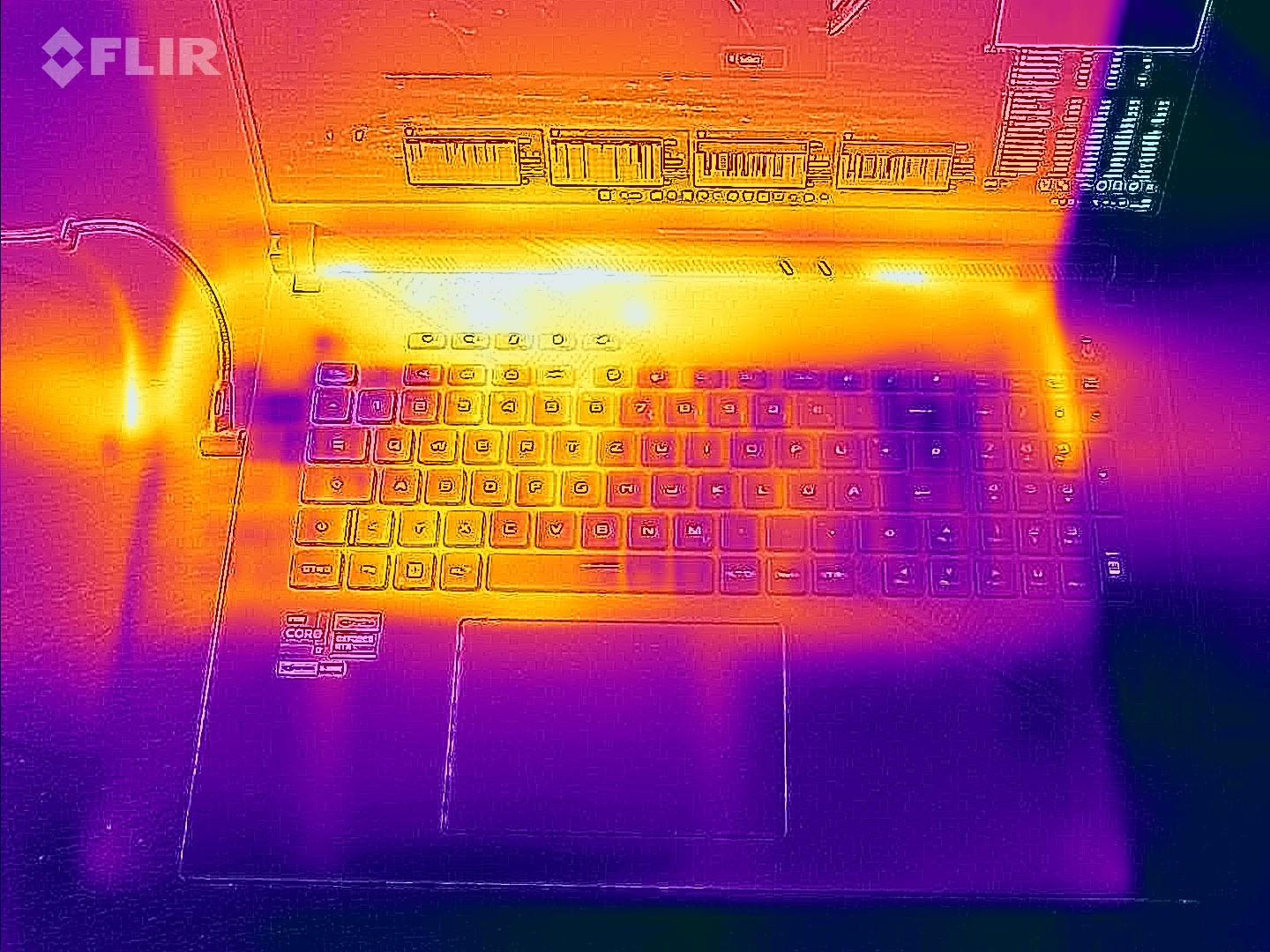 En cuanto a la temperatura, no hay valores atípicos. Aunque el G18 es ligeramente más frío que el Blade 18 en reposo, se calienta algo más bajo carga. Temperaturas máximas de 45 °C en la parte superior de la unidad y hasta 47 °C en la base, son aceptables.