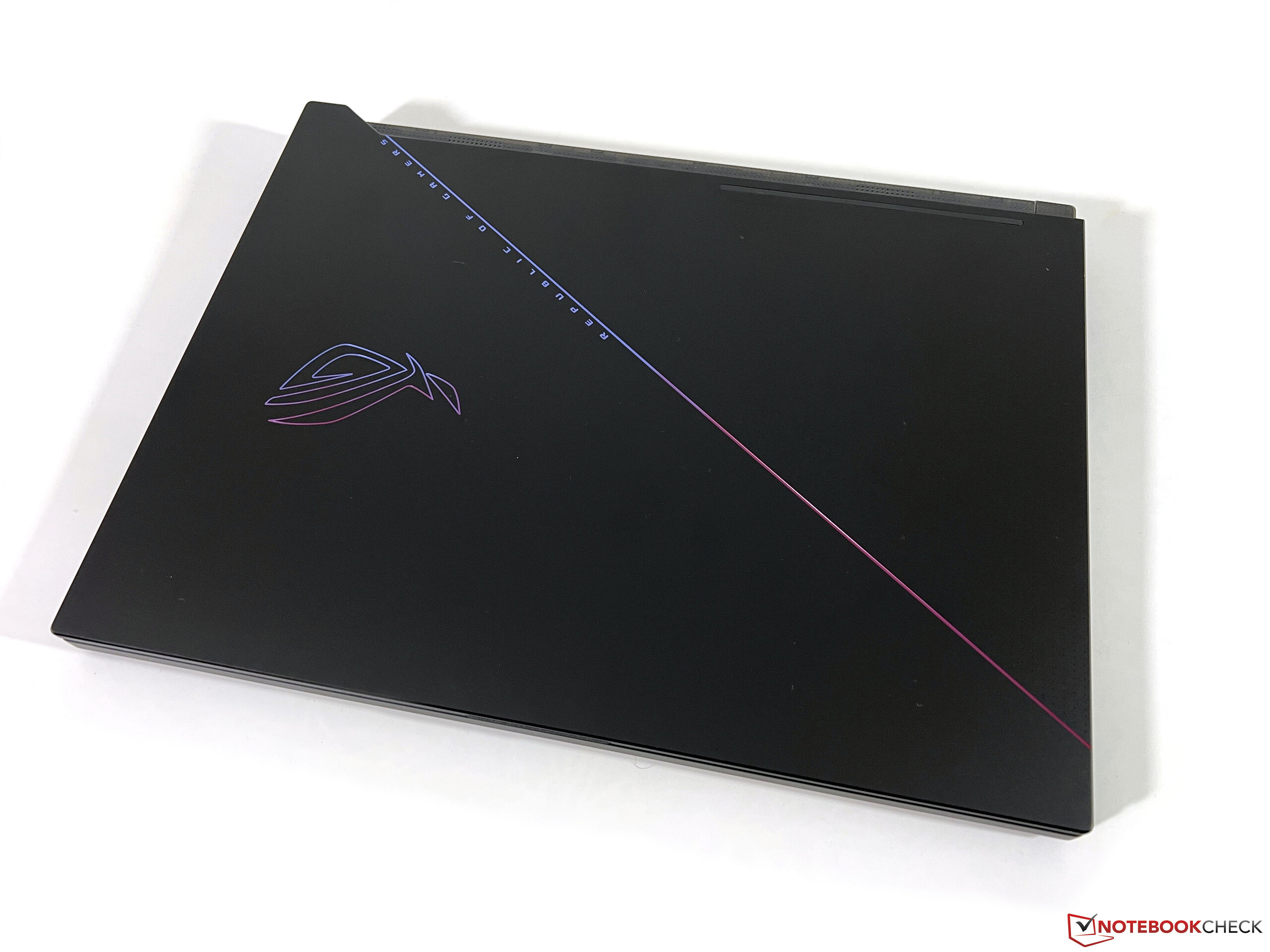 El diseño del chasis no ha cambiado respecto al modelo modelo anterior. El portátil es bastante sutil cuando la tapa está cerrada y sólo el logotipo ROG es de color en comparación con el acabado negro mate. Tampoco hay iluminación loca en el chasis. La calidad del portátil deja una buena impresión, sólo la cubierta inferior de plástico se queda un poco corta.