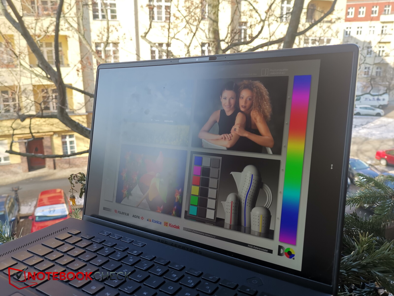 Asus anuncia una cobertura del 100% del espacio de color DCI-P3, pero medimos "sólo" el 92.8%. El espacio de color AdobeRGB sigue cubierto al 83%. Al menos en el campo de pruebas de nuestros competidores seleccionados, esto sigue resultando en la primera posición. En general, la pantalla también es adecuada para la edición profesional de fotos y vídeos.