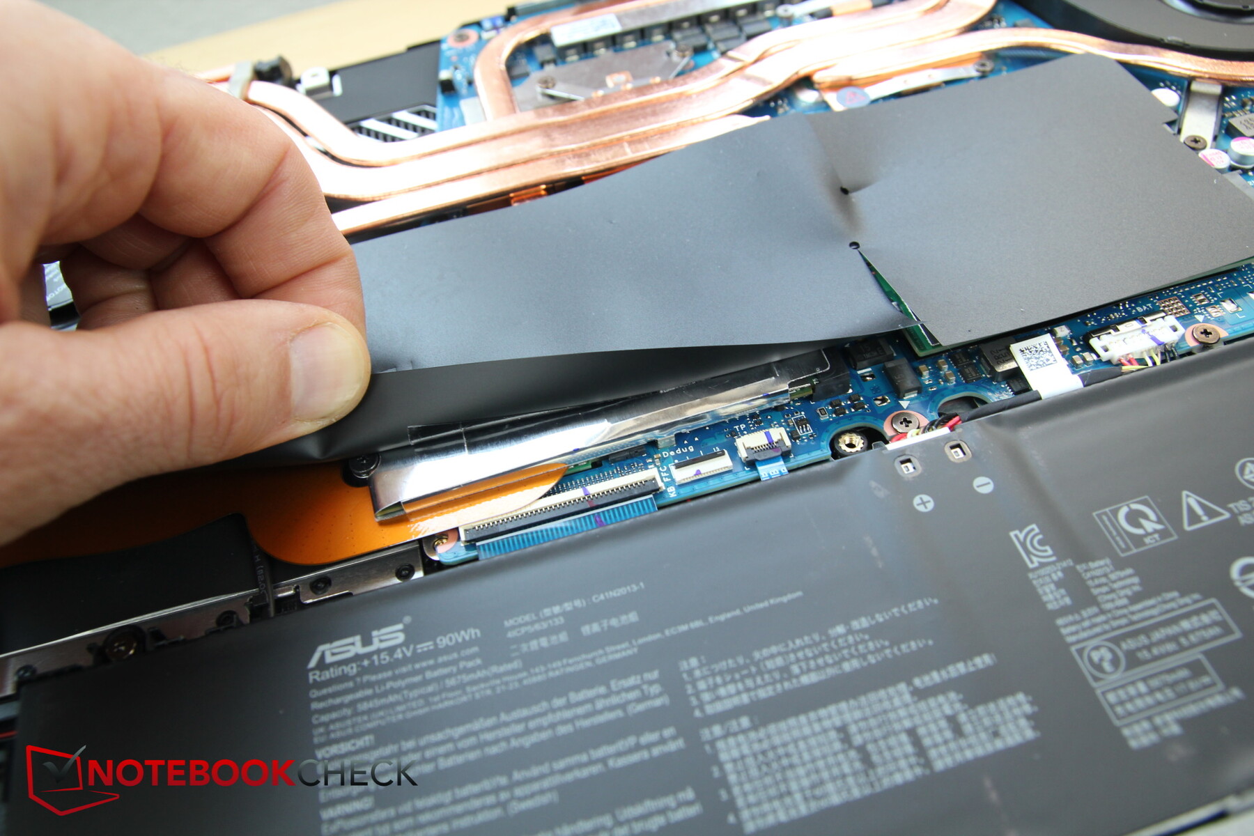 Quitar la cubierta inferior resultó ser una experiencia relativamente sencilla. Una vez retirada la cubierta, tienes acceso a los ventiladores, la batería, el SSD y la RAM. Estos dos últimos están protegidos por una cubierta de plástico negro asegurada con cinta adhesiva, además de que el SSD también está cubierto por una especie de lámina metálica para mejorar la disipación del calor. Hay una ranura M.2 secundaria para un SSD adicional.