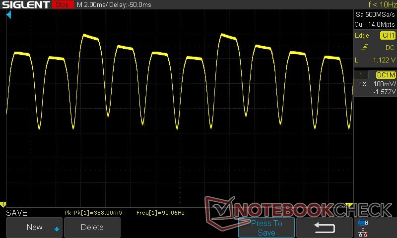 Asus usa un panel Samsung OLED 2.8K 90 Hz en el VivoBook 14X que muestra excelentes características de color para los editores en ciernes. El panel sufre de PWM a niveles bajos de brillo, pero usa DC Dimming para compensar algo el parpadeo a mayor iluminación.
