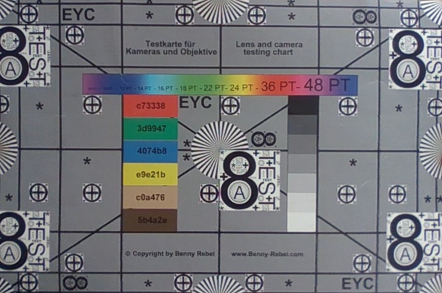La webcam integrada de 720p del VivoBook 14X muestra poca nitidez y desviaciones de color significativas. El test X-Rite ColorChecker Passport revela el Delta E más alto de 22.45 con el color Azul Púrpura.