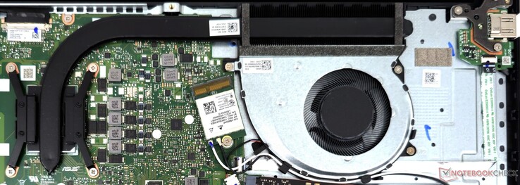 Como la RAM de 8 GB está soldada a la placa base, sólo hay un zócalo SO-DIMM para ampliar la memoria hasta 16 GB. La tarjeta WLAN y el SSD NVMe son intercambiables, y la batería puede desatornillarse y cambiarse si es necesario.