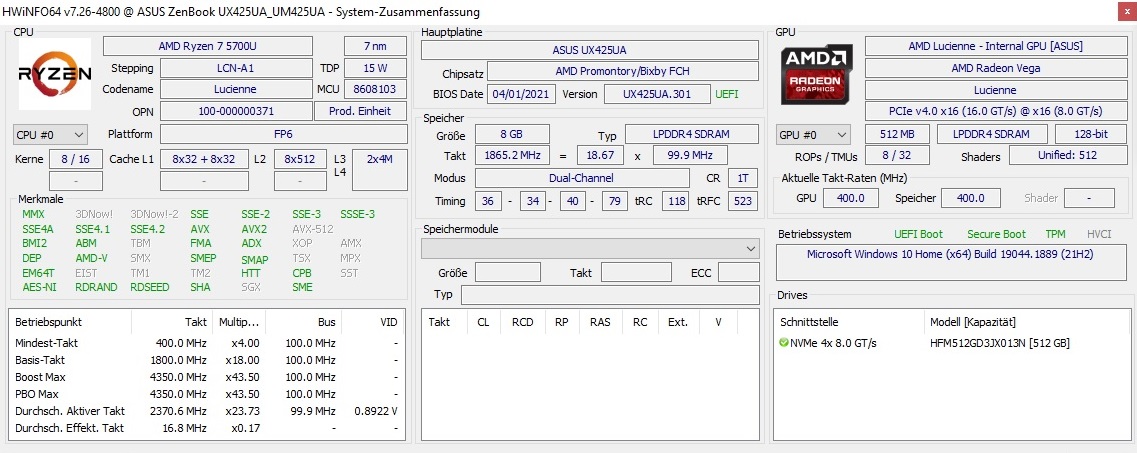 | Asus ZenBook 14 UM425U R7 5700U, Vega 8 | Asus ZenBook 14 UX425EA i7-1165G7, Iris Xe G7 96EUs | HP Envy 14-eb0252ng i5-1135G7, Iris Xe G7 80EUs | Lenovo IdeaPad 5 Pro 14ACN6 R5 5600U, Vega 7 | |