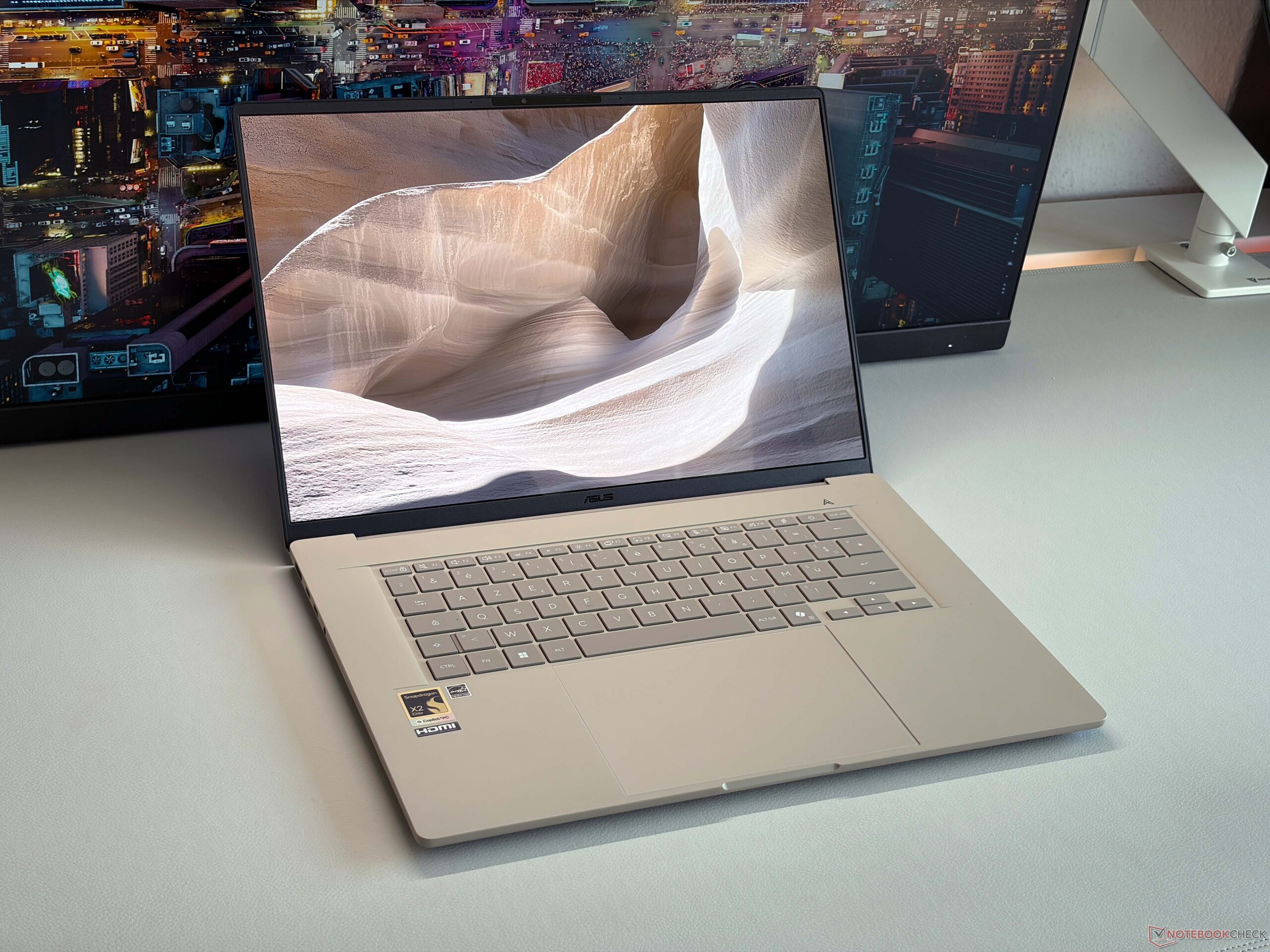 Tras el Zenbook A14 con procesador Snapdragon de 2024, Asus lanza ahora un modelo más grande de 16 pulgadas como rival directo del Zenbook S16 y de dispositivos como el Dell XPS 16 o el Galaxy Book6 Pro 16 de Samsung y, obviamente, el MacBook Air de 15 pulgadas de Apple. El nuevo Zenbook A16 también utiliza un chasis muy ligero e inclina la balanza con sólo 1,21 kg. Por 1599 dólares obtiene el flamante procesador Qualcomm Snapdragon X2 Elite Extreme en combinación con 48 GB de RAM, 1 TB de almacenamiento SSD, así como un panel OLED de 16 pulgadas con resolución de 120 Hz y 2,8K. Consulte también nuestro análisis de los nuevos chips Snapdragon X2 Elite para obtener más detalles: