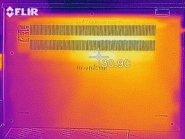 (-) La temperatura máxima en la parte superior es de 45.3 °C / 114 F, frente a la media de 34.3 °C / 94 F, que oscila entre 21.2 y 62.5 °C para la clase Office.