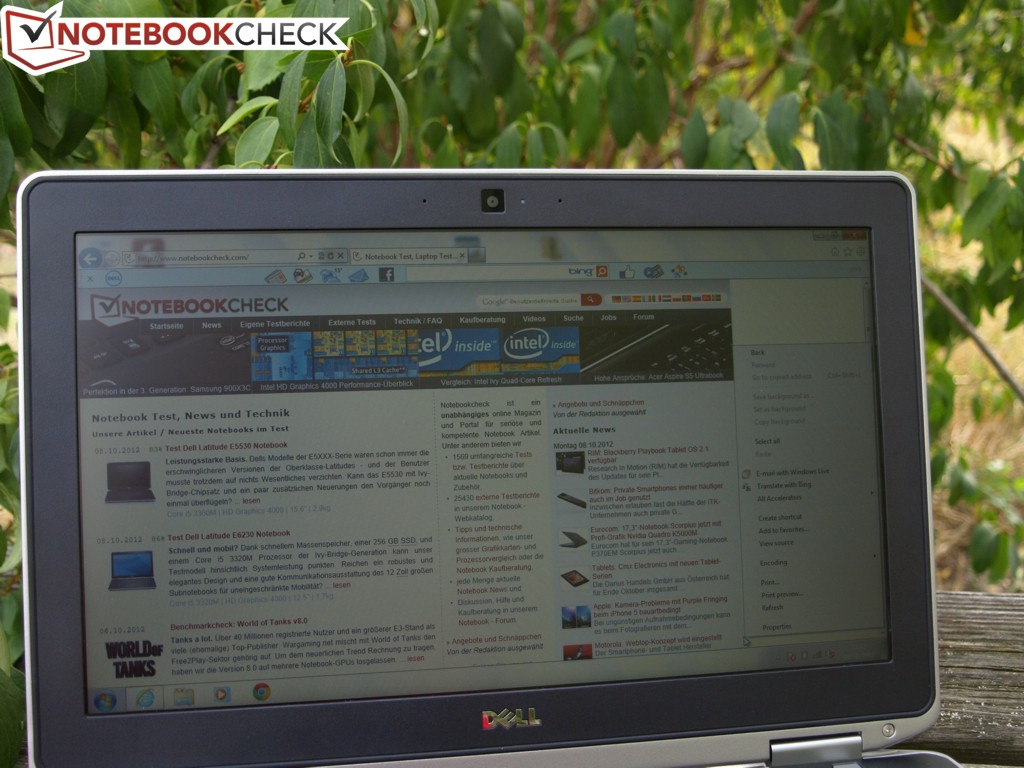 Gracias a la superficie mate del display, el uso en exteriores no debería acabar con molestos reflejos. Para un uso completamente cómodo en exteriores el brillo es sencillamente demasiado bajo. Por tanto, a la hora de trabajar en exteriores, deberías buscar un lugar a la sombra si es posible. Con un brillo de mas de 250 cd/m², el Fujitsu Lifebook S792 puede hacerlo mejor.