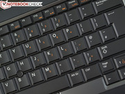 En comparación con el predecesor no hay cambios observables. El teclado resistente a la humedad con una distribución estándar (diseño no Chiclet) puede retroiluminarse en cuatro niveles diferentes a través de la retroiluminación instalada opcionalmente en nuestro dispositivo de pruebas. Las teclas son ligeramente cóncavas, lo bastante grandes para ser agradables al tacto. Gracias a la relativamente corta caída y firme punto de presión, el teclado es bueno para mecanografiar por largos periodos de tiempo.