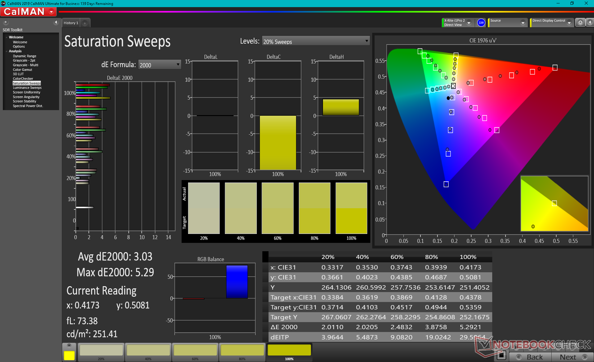 ΔE Greyscale Calman: 2.9 | ∀{0.09-98 Ø5}