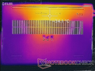 (-) La temperatura máxima en la parte superior es de 50.2 °C / 122 F, frente a la media de 36.9 °C / 98 F, que oscila entre 21.1 y 71 °C para la clase Multimedia.