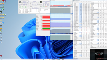 La ejecución de Witcher 3 exige algo más de potencia que antes, unos 325 W, para ser casi tan potente como la Titan 18 HX. El mayor consumo en comparación con nuestro modelo 2023 puede atribuirse probablemente al panel 4K más brillante y de mayor resolución de nuestra configuración más reciente.