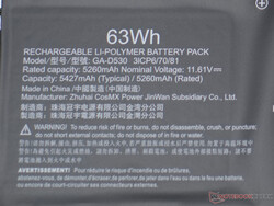 Como mucho, la batería de 63 Wh del Gigabyte Aero 14 OLED duró más de 7.5 horas en el test de navegación web Wi-Fi, pero sólo tras reinstalar por completo el Gigabyte Control Center. Antes de eso, sólo fueron posibles tres horas de duración con un brillo de pantalla de 150 cd/m². Aunque el Aero 14 casi tiene la batería más pequeña de la comparativa, funciona con bastante eficiencia.