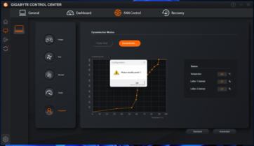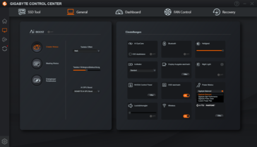 El software de control de Gigabyte es otra historia: el Centro de Control es sencillamente decepcionante. Es tan desordenado como propenso a errores. Obviamente, esto merma nuestra impresión general del portátil. Lo mismo cabe decir de la conectividad en términos de USB-C y PowerDelivery. Otras fuentes de alimentación USB-PD simplemente no quieren cooperar con el portátil. Así, el factor de movilidad del portátil sufre aquí.