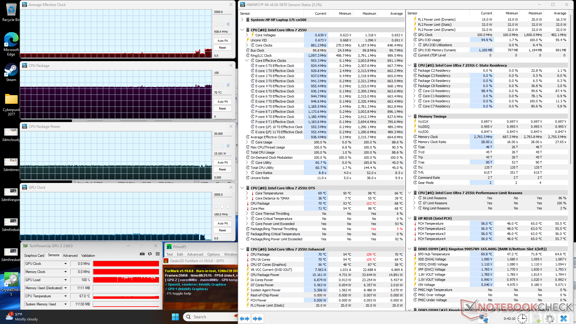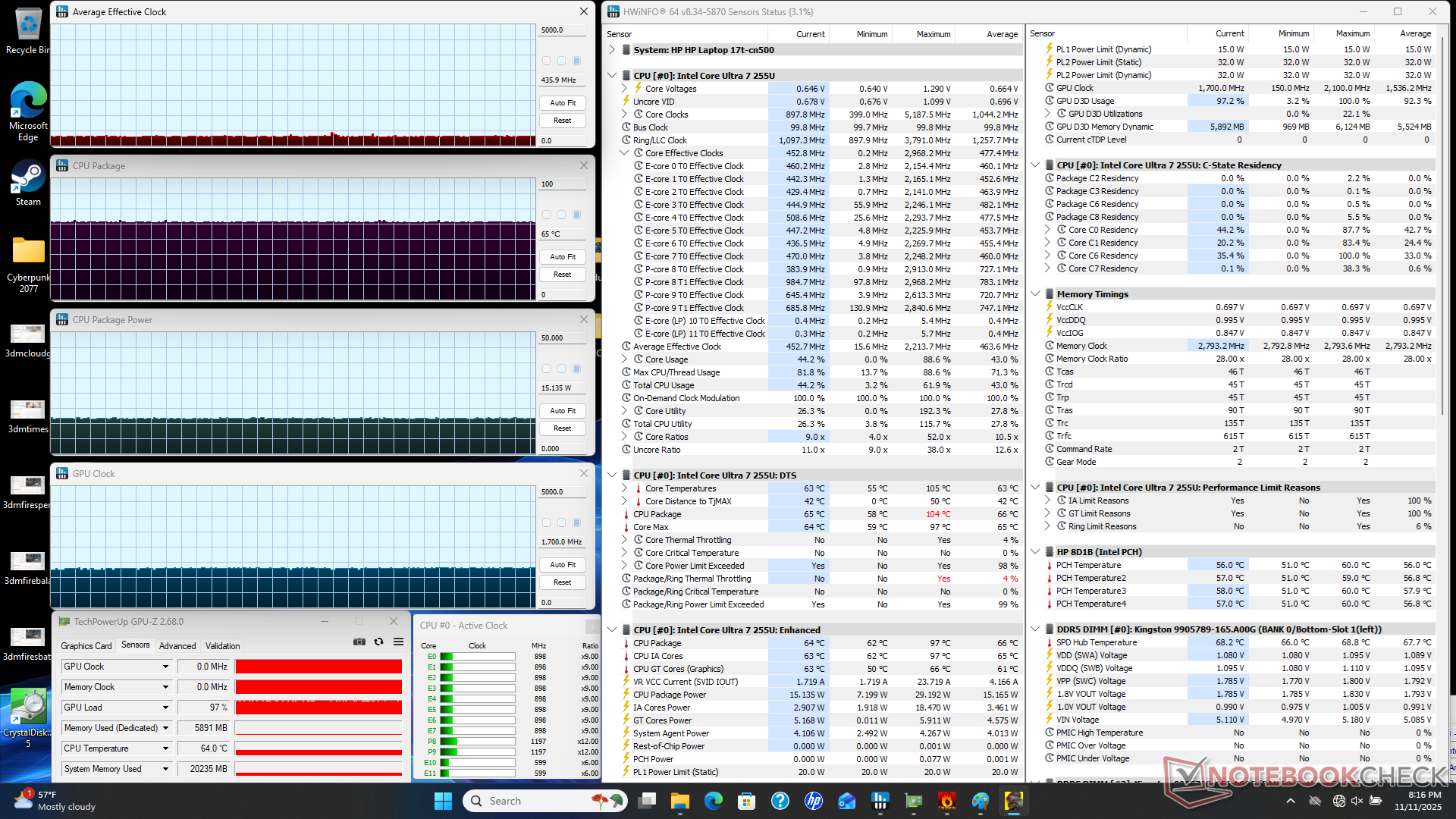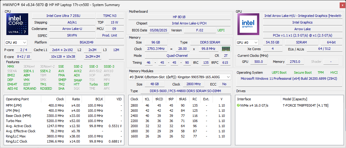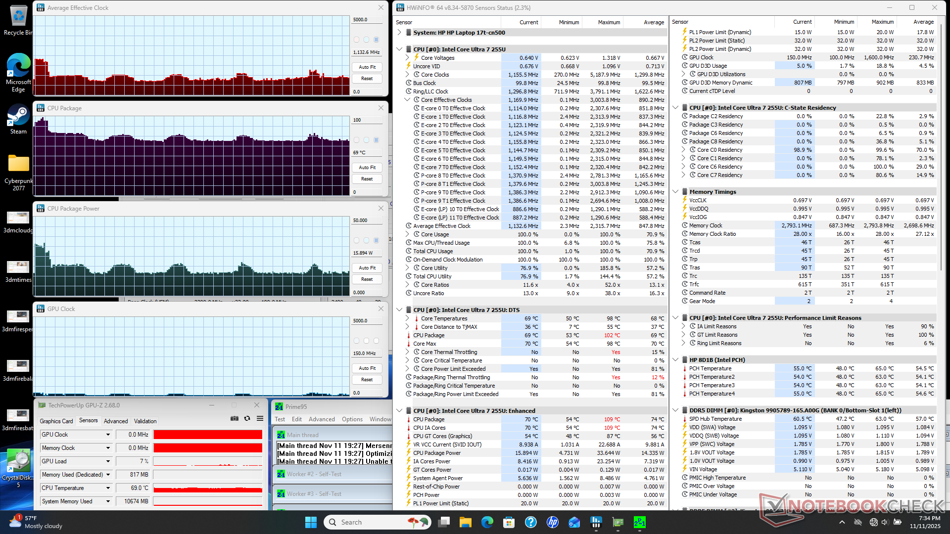 | HP 17t-cn500 Intel Core Ultra 7 255U ⎘ Intel Graphics 4-Core iGPU (Arrow Lake) ⎘ 96 GB Memoría, 4000 GB SSD | Amazon: $899.00 Precio de catálogo: 1150 USD | 2.1 kg | 19.8 mm | 17.30" 1920x1080 127 PPI IPS | |