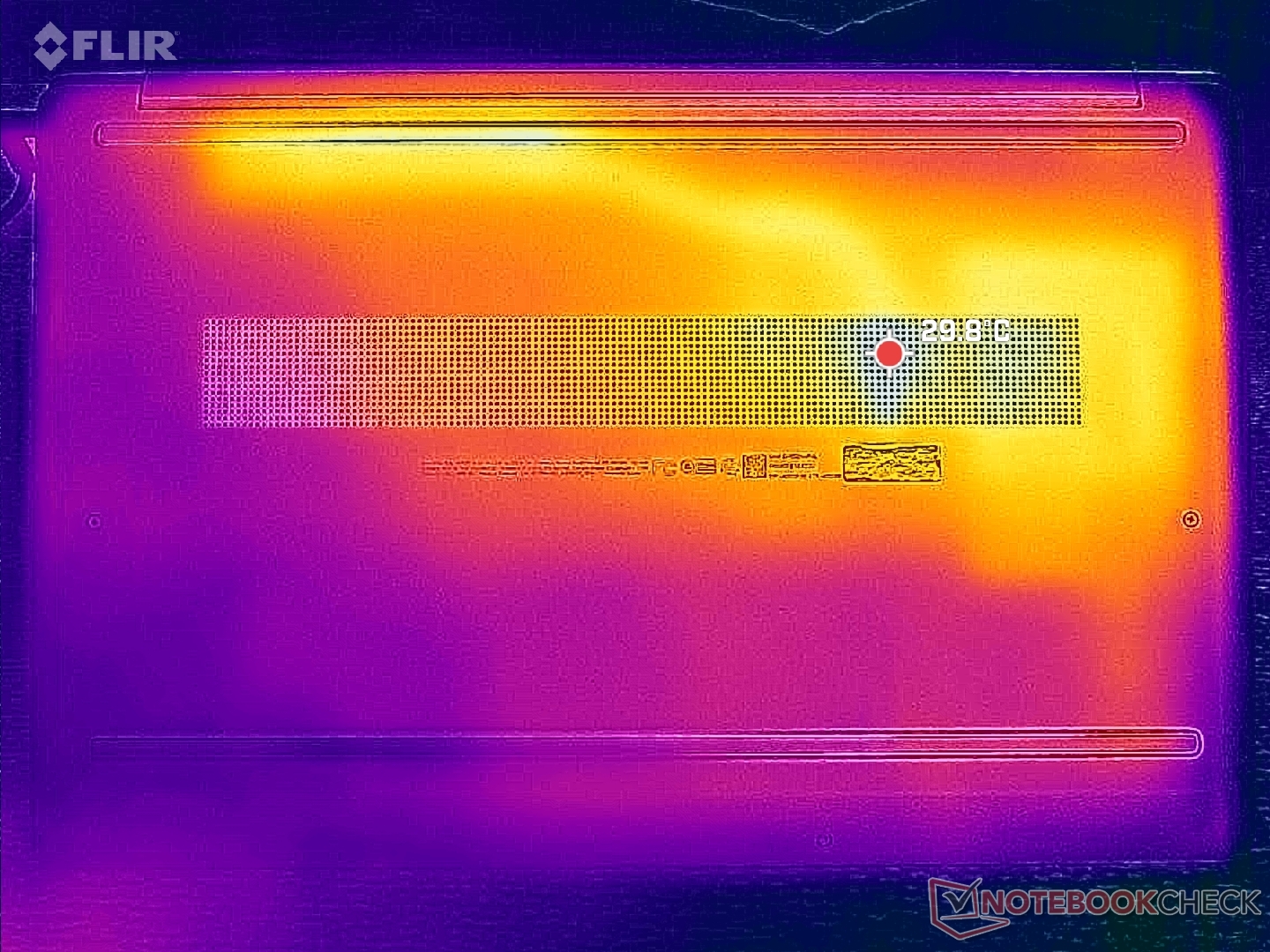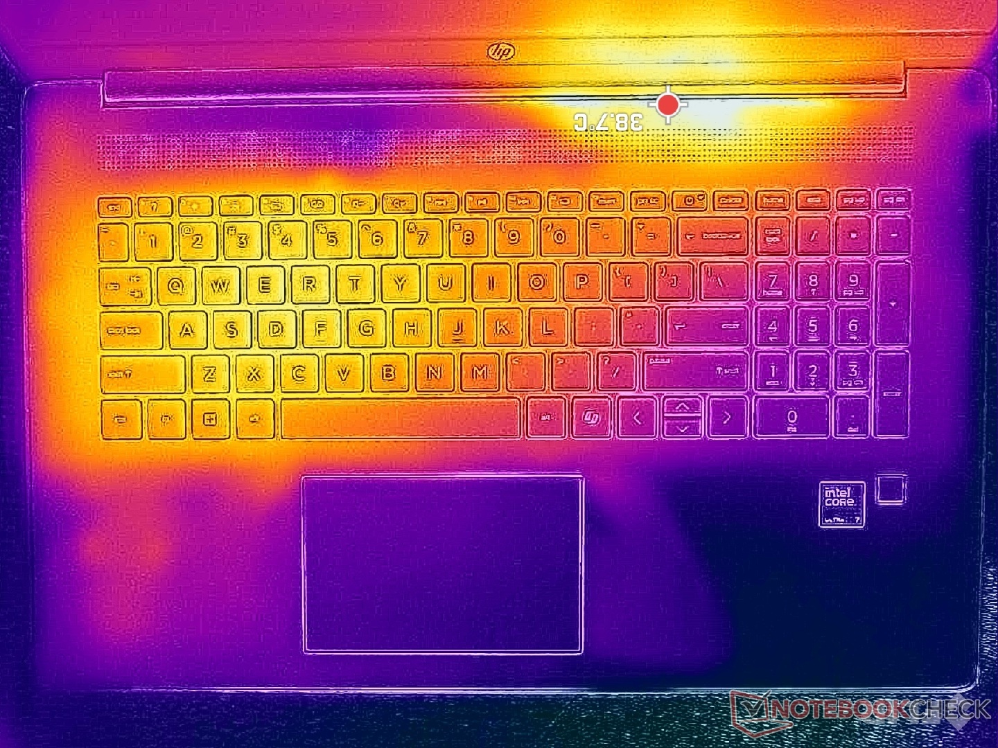 La mitad izquierda del portátil se calienta notablemente más que la derecha debido a cómo está diseñada la solución de refrigeración. El punto caliente de las teclas WASD puede llegar a calentarse hasta 40 C cuando se ejecutan cargas exigentes durante periodos prolongados, frente a los apenas 30 C del teclado numérico.