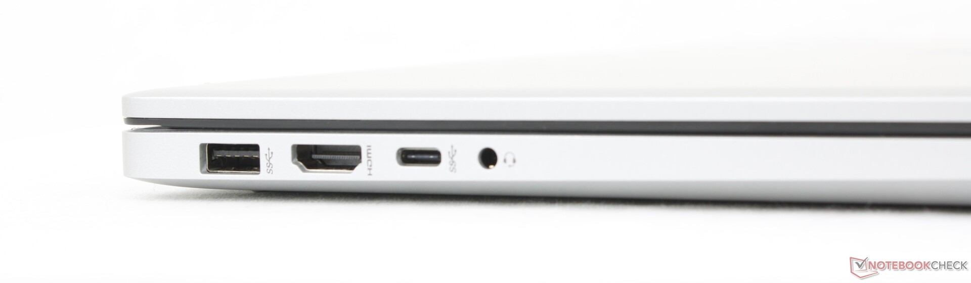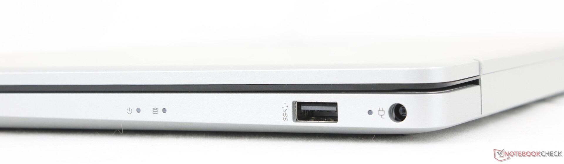 Las opciones de puerto son idénticas a las del Lenovo V17 pero sin el lector de tarjetas SD integrado. El único puerto USB-C admite monitores externos y la carga con adaptadores de CA USB-C de terceros en caso de que los propietarios pierdan alguna vez el adaptador de CA de barril.