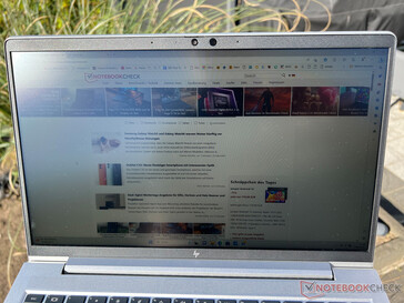 Comparada con sus competidoras, la pantalla IPS de 14 pulgadas del portátil fue la que mejor lo hizo en cuanto a brillo, contraste y reproducción del color. El panel alcanzó un valor de algo menos de 400 lúmenes - podría, sin embargo, iluminarse un poco más uniformemente. Aún así, el valor alcanzado junto con su aspecto mate significa que es más que adecuado para su uso en exteriores - incluso bajo la luz solar directa. Esto hace que el EliteBook sea ideal para el trabajo móvil en exteriores.