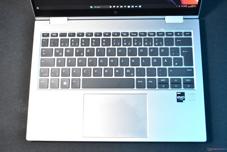 HP incorpora un teclado similar al de los modelos EliteBook más grandes, aunque se trata de una versión más pequeña. El recorrido de las teclas cuadradas de estilo Chiclet es el mismo que en los modelos más grandes, 1,5 mm. La sensación de tecleo que proporcionan las suaves teclas retroiluminadas (dos niveles) es excelente, ya que los interruptores situados debajo proporcionan una sensación de tecleo precisa, firme y suave. La flexión del teclado es nula, lo que también ayuda. Se trata de un gran teclado.