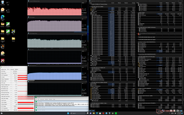 Cuando se ejecuta Prime95, la CPU alcanza los 3,1 GHz y 101 W antes de caer rápidamente y estabilizarse en torno a los 2,4 GHz y 84 W para mantener una temperatura del núcleo razonable de 81 C. La temperatura del núcleo puede llegar a los 97 C si la GPU también se somete a estrés al mismo tiempo, como se muestra en las capturas de pantalla siguientes.