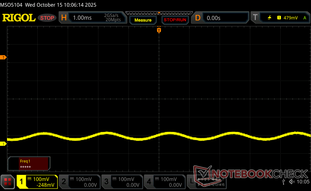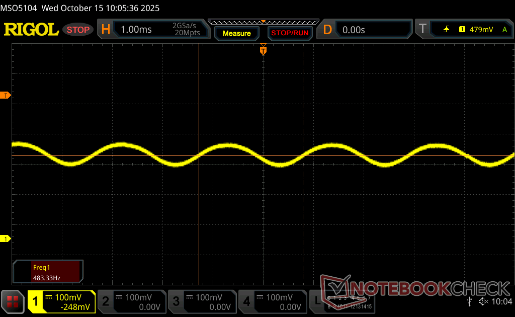 Parpadeo de Pantalla / PWM detectado | 480 Hz Amplitude: 13.5 % | ||