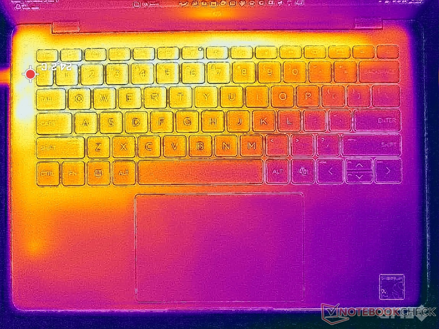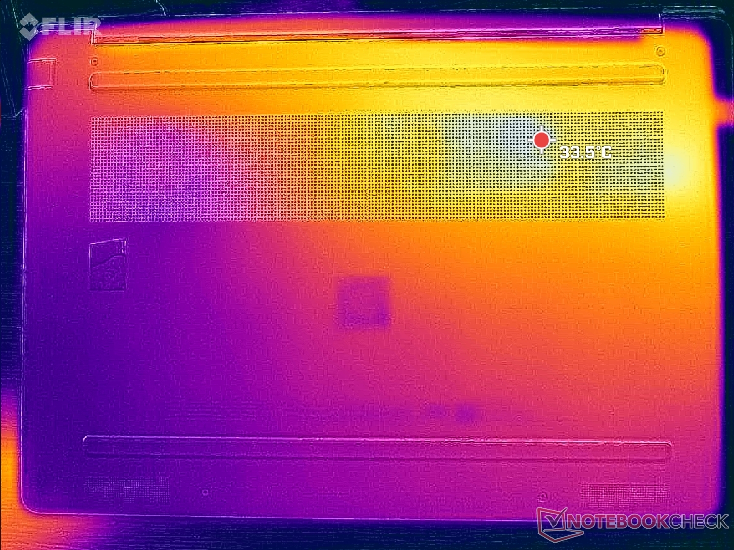 (+) La temperatura máxima en la parte superior es de 32.4 °C / 90 F, frente a la media de 35.9 °C / 97 F, que oscila entre 21.4 y 59 °C para la clase Subnotebook.
