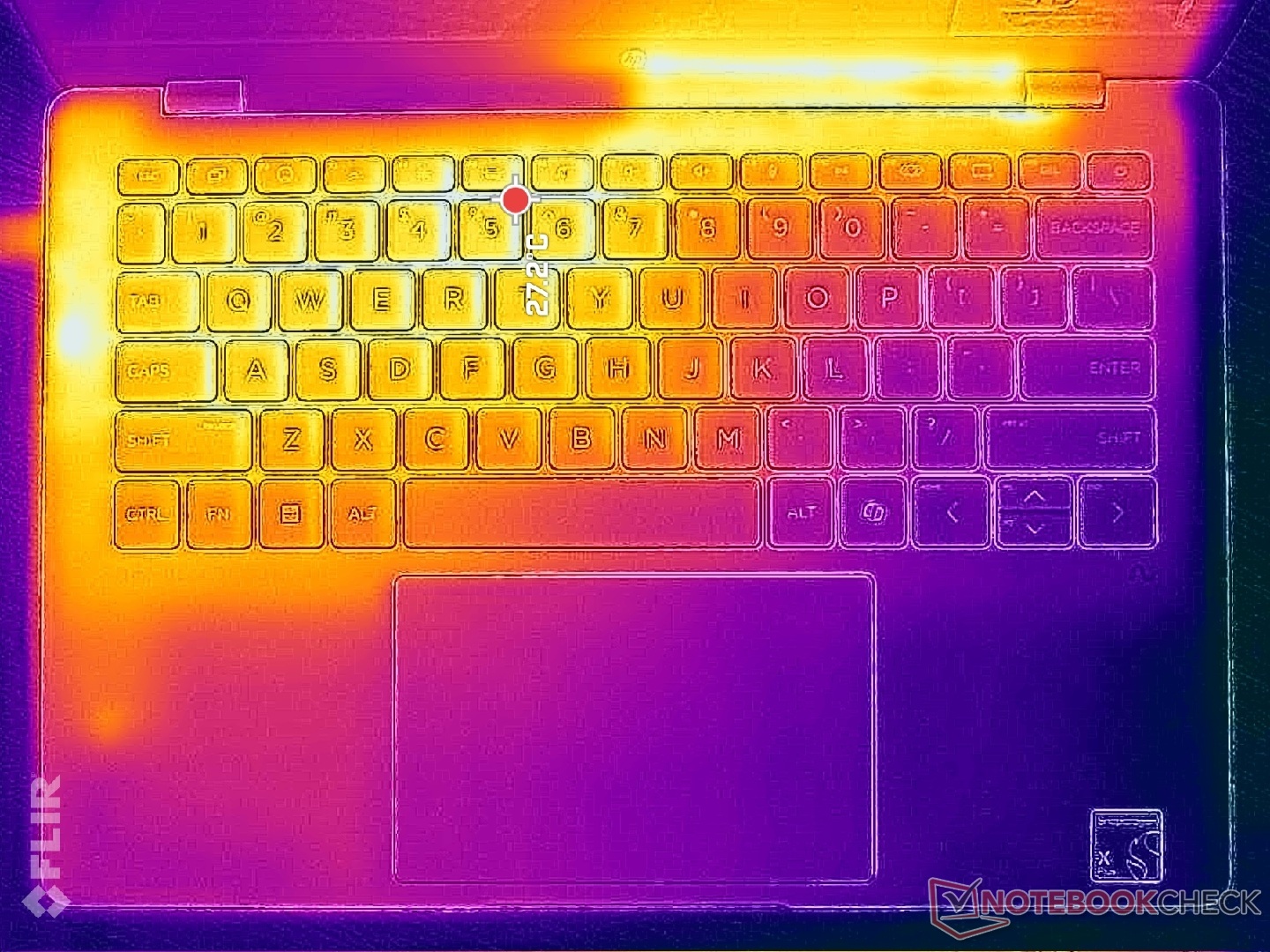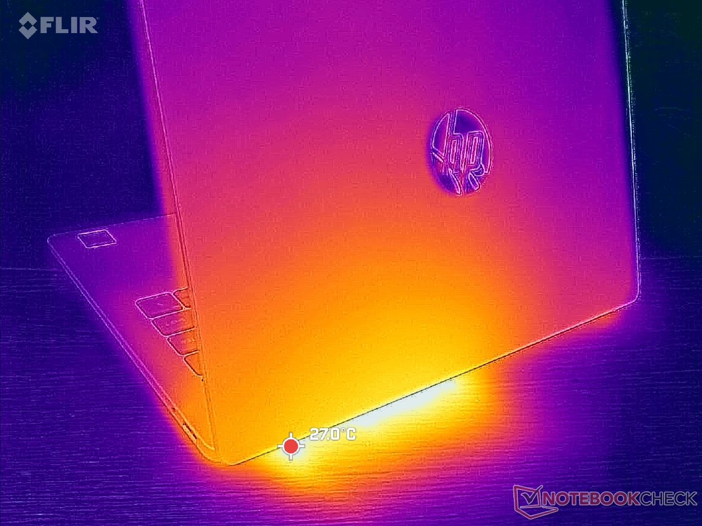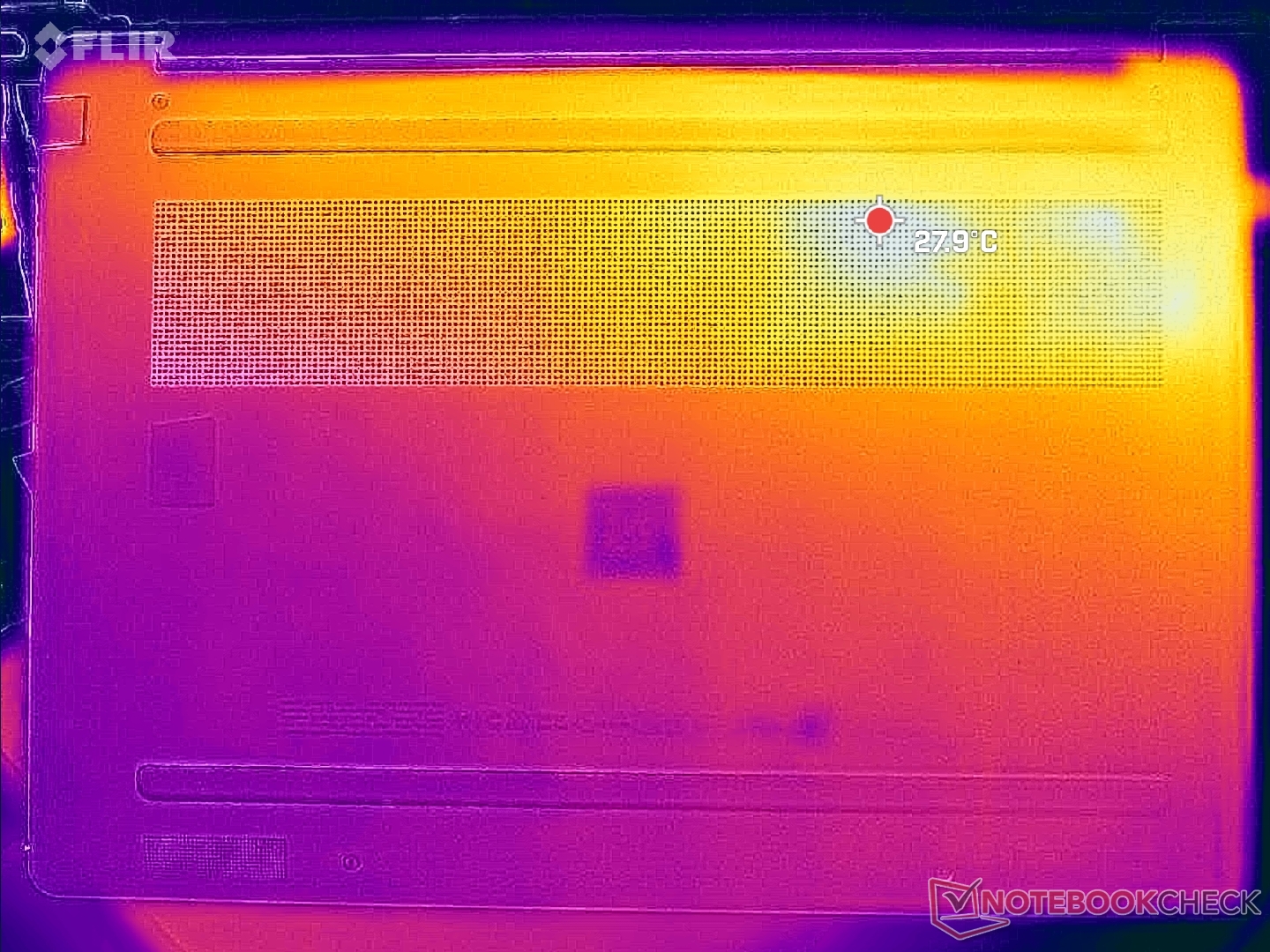 (+) En reposo, la temperatura media de la parte superior es de 27.3 °C / 81# F, frente a la media del dispositivo de 30.8 °C / 87 F.