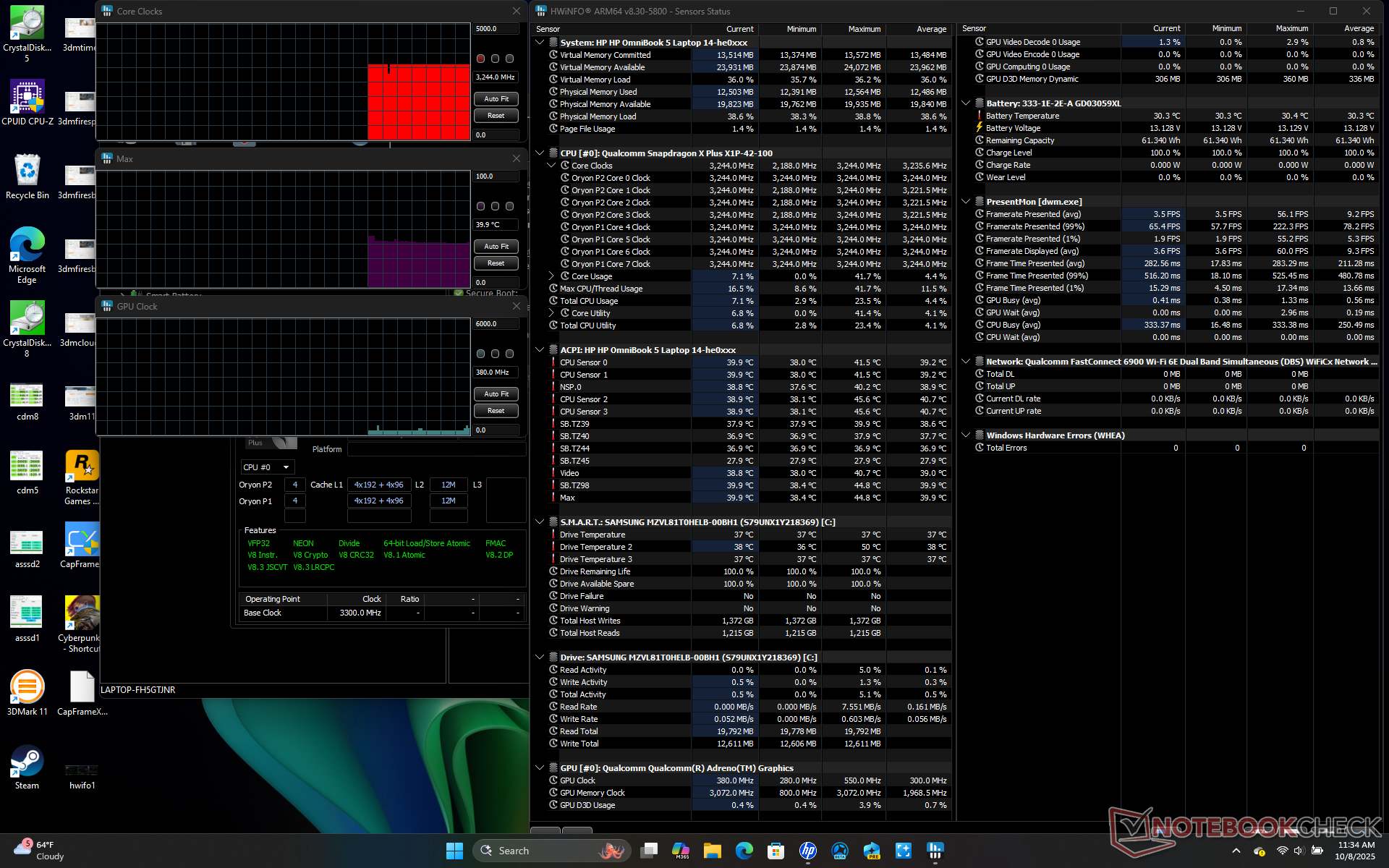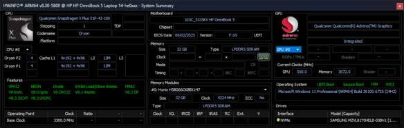 HP Omnibook 5 14 Qualcomm Snapdragon X Plus X1P-42-100 ⎘ Qualcomm SD X Adreno X1-45 1.7 TFLOPS ⎘ 16 GB Memoría, 1024 GB SSD | Amazon: $579.99 Precio de catálogo: 550 USD | 1.3 kg | 12.7 mm | 14.00" 1920x1200 162 PPI OLED | |