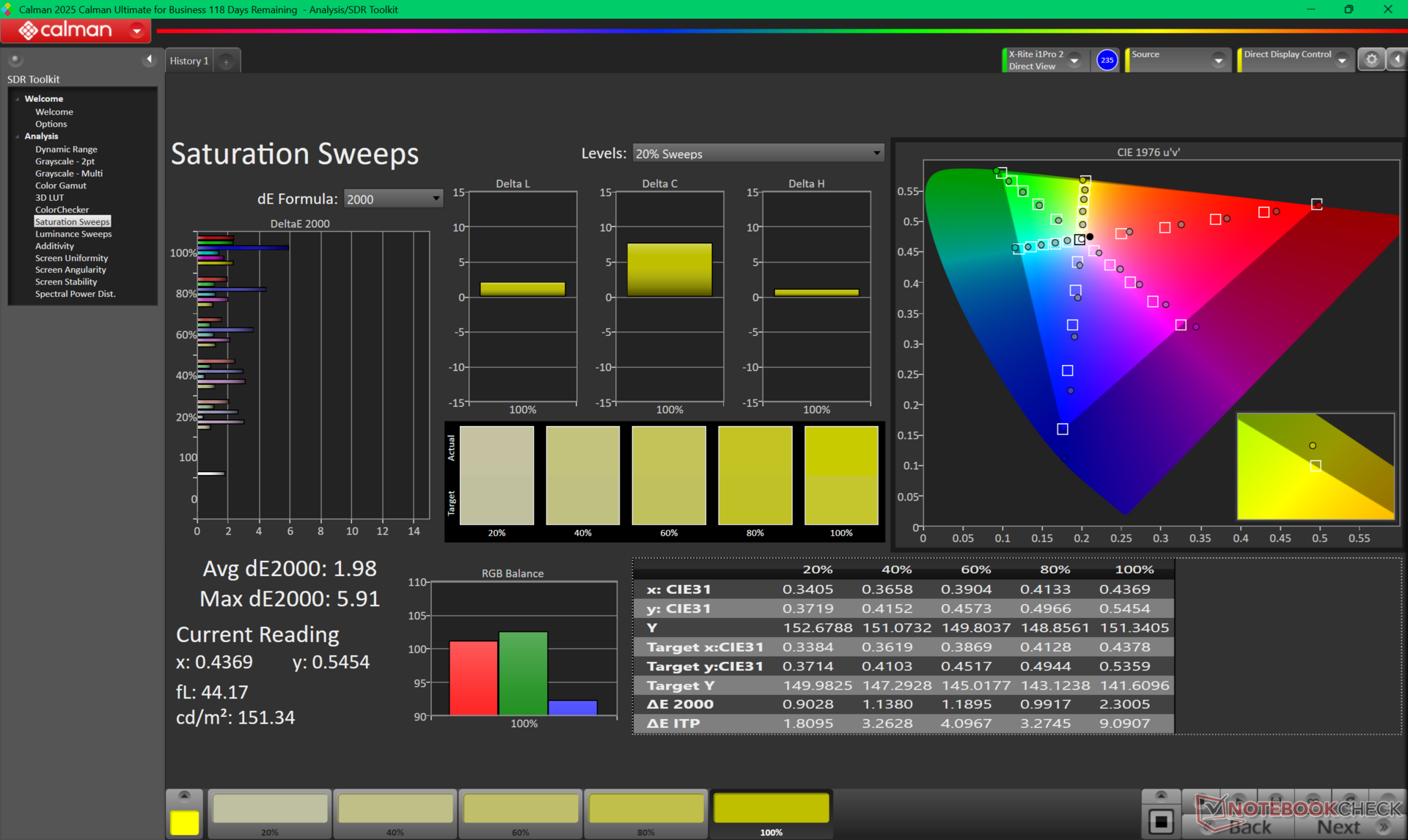 ΔE Greyscale Calman: 1.3 | ∀{0.09-98 Ø5}
