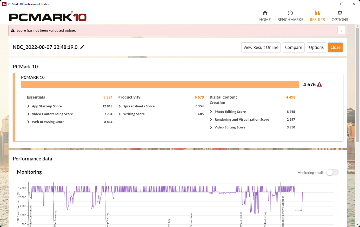 | Reloj de la CPU P-Cores (GHz) | Reloj de la GPU (MHz) | Temperatura media dela CPU (°C) | Temperatura media de la GPU (°C) | |