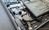 Después de aflojar cinco tornillos Phillips, tendrás que quitar la placa base de metal con la ayuda de un spudger. Ahora puedes acceder al SSD M.2 2280, al módulo WiFi reemplazable y a una ranura M.2 2242 vacía que aceptará un segundo SSD o una tarjeta WWAN (aunque no hay antenas en los modelos sin móvil).