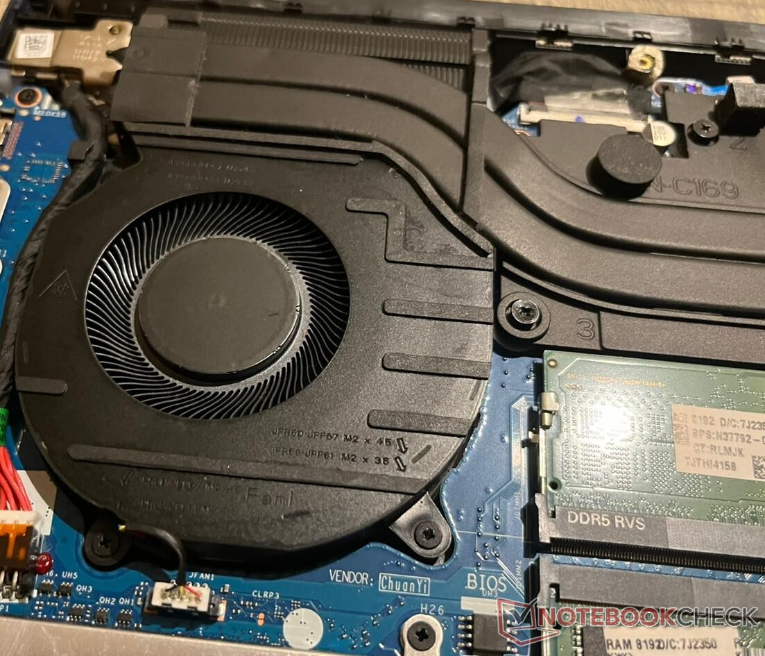 Entrar en el HP Victus 16 es muy fácil. Todo lo que se necesita es un destornillador Philips, aflojar ocho tornillos de la parte trasera y abrir la cubierta. La tarjeta WLAN, la RAM DDR5 y el SSD NVMe se pueden cambiar. La batería puede desatornillarse y sustituirse si es necesario.