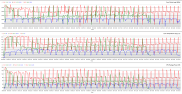 El núcleo P puede acelerar hasta 4,4 GHz durante un breve periodo, un poco menos que la cifra anunciada por Intel de 4,7 GHz. Del mismo modo, su núcleo E alcanza un máximo de 3,49 GHz, un pelín por debajo de los 3,50 GHz. De media, el reloj boost general alcanza los 3,8 GHz. Al cabo de un rato, se estabiliza en torno a los 2,53 GHz.