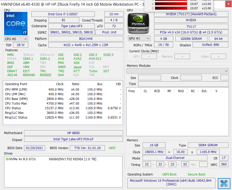 | 85.2 % v7 (old) | 04/2021 | HP ZBook Firefly 14 G8 2C9Q2EA i7-1165G7, T500 Laptop GPU | 1.4 kg | 17.9 mm | 14.00" | 1920x1080 | |