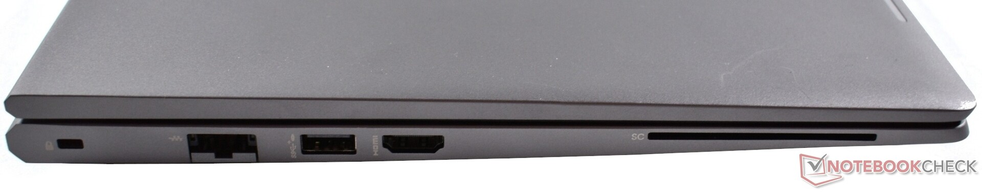 Un lector de SmartCard es opcional, pero siempre hay un bloqueo Kensington (nano). Junto con el puerto de carga propietario, el paquete completo se completa con un puerto de audio combinado. Sin embargo, echamos de menos una ranura para tarjetas SD.