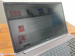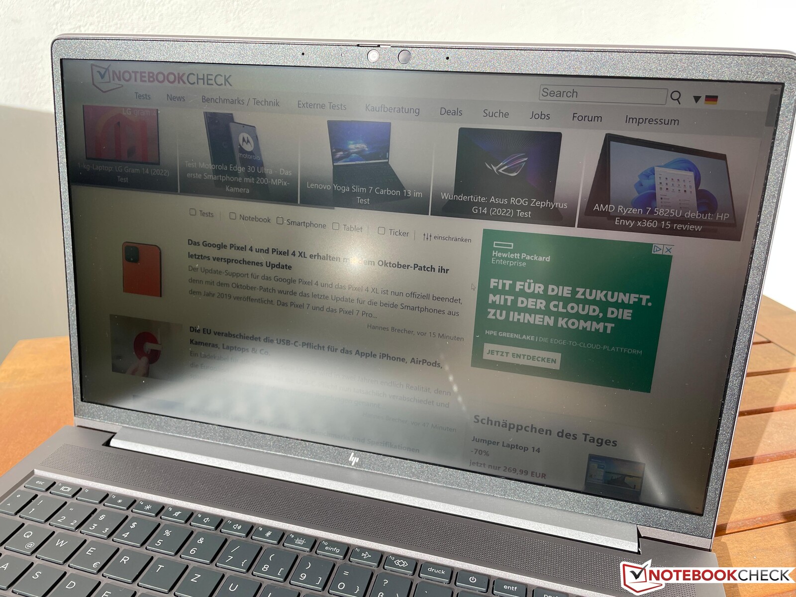 HP anuncia un brillo de 400 cd/m², y nuestra unidad de pruebas también lo alcanza en el rango superior. Al mismo tiempo, el valor de negro es muy bajo, de 0,15, lo que lleva a una muy buena relación de contraste de más de 2.500:1. A pleno brillo y con un fondo oscuro, se aprecian algunos halos de luz. No se utiliza PWM.
