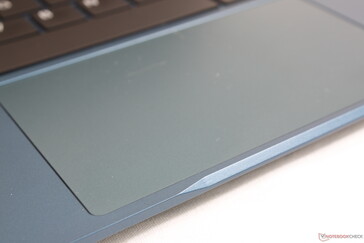 El clickpad es más grande que el del Lenovo IdeaPad 5 Pro 14 (12,5 x 7 cm frente a 10,5 x 7 cm) mientras que es ligeramente más estrecho que el clickpad del InBook X1 Pro. El control del cursor es suave y sensible, sin saltos ni paradas repentinas. Los botones integrados del clickpad también tienen una respuesta satisfactoria cuando se pulsan, pero son poco profundos y relativamente ruidosos como consecuencia.