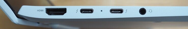 La selección de puertos es similar a la del modelo anterior. Mientras que una clavija de audio, una salida HDMI (con una versión no especificada), y dos puertos USB 4 tipo-C con Power Delivery y DisplayPort o Thunderbolt 4 ocupan el lado izquierdo, un lector de tarjetas microSD, dos puertos USB 3.2 tipo-A tradicionales, y un cierre Kensington están situados a la derecha. Como los puertos están cerca de la parte trasera en ambos lados, no debería haber cables que interfieran cuando se use un ratón externo.
