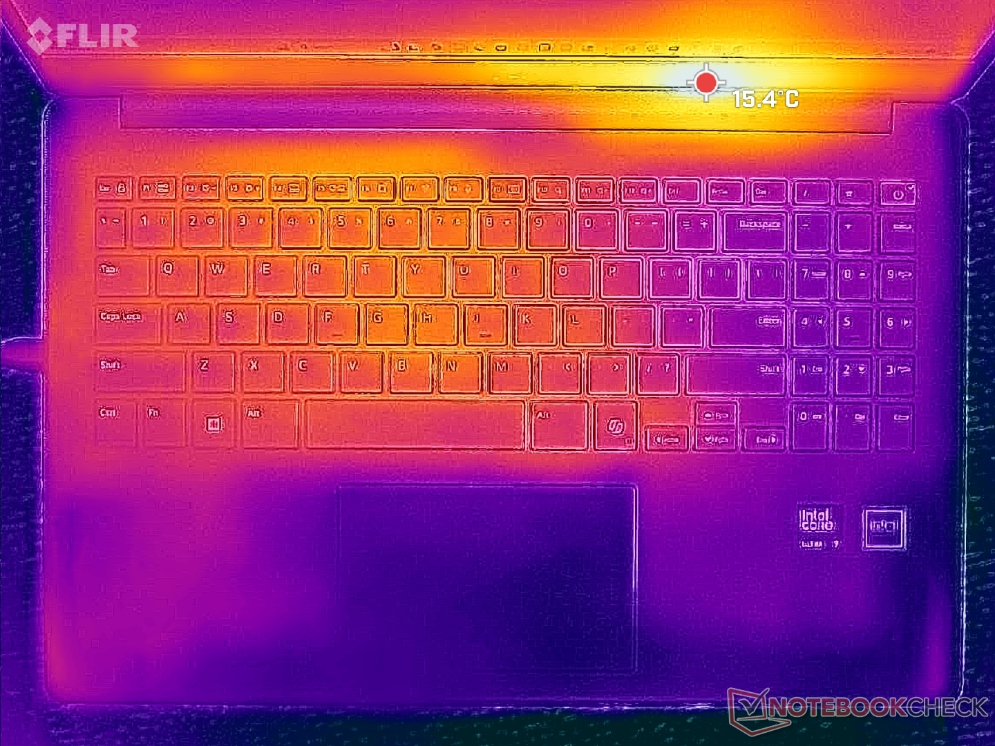 La temperatura del núcleo rondaría el rango bajo de 70 C al ejecutar cargas exigentes como juegos, lo que es significativamente más frío que lo que observamos en el HP Envy x360 15.