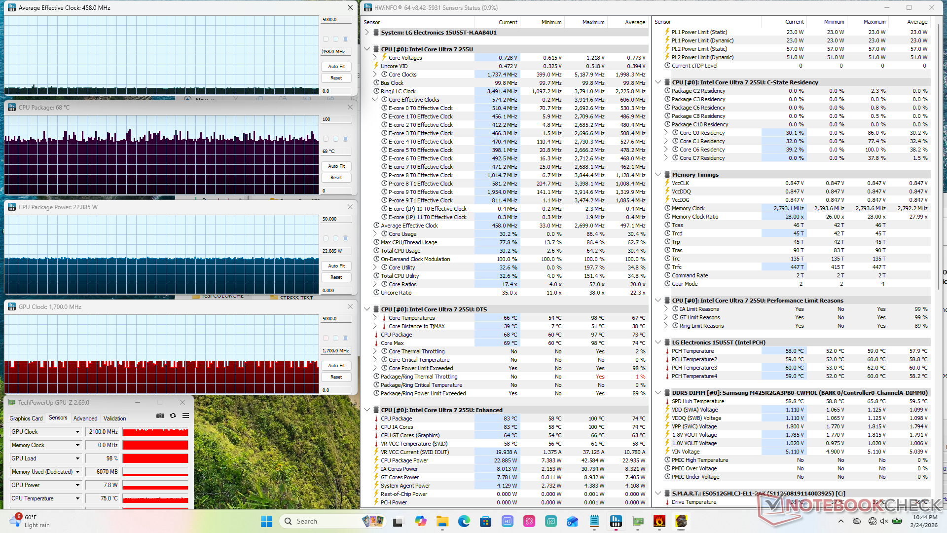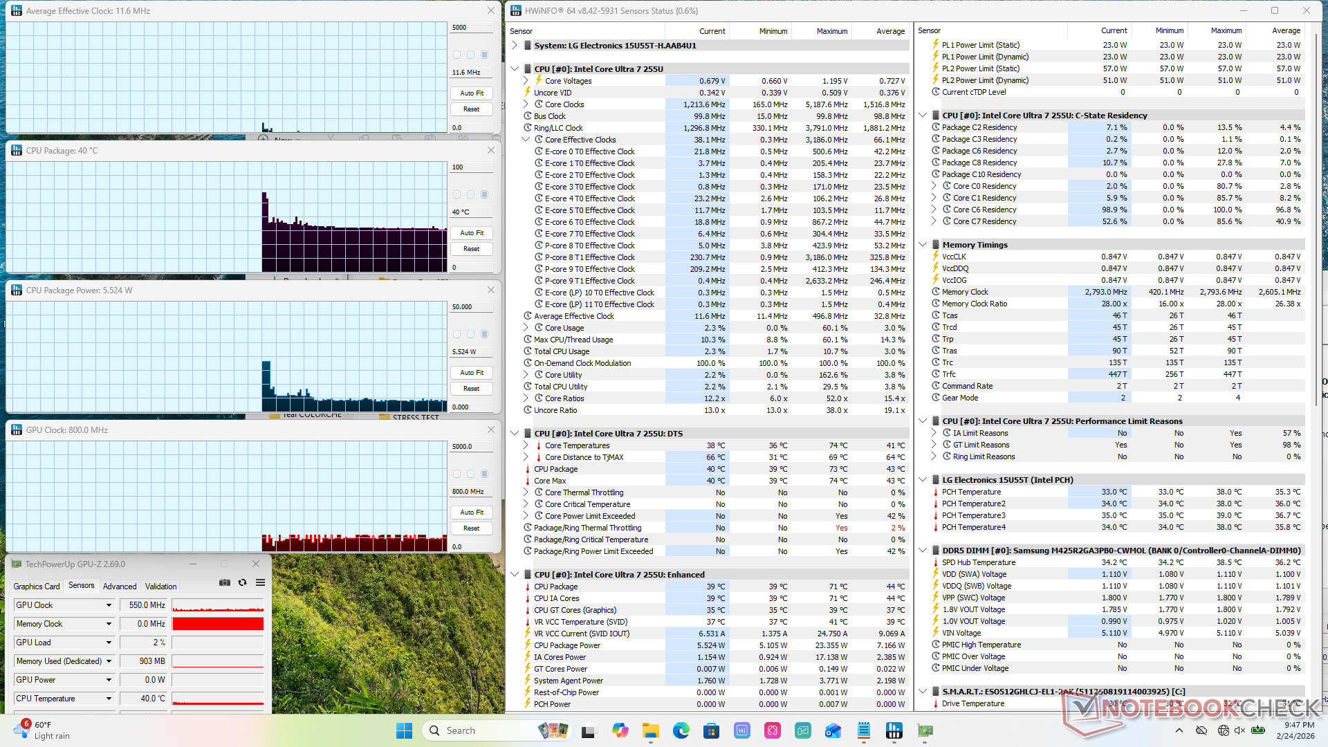 | LG Gram 15U55T Ultra 7 255U, Graphics 4-Core iGPU (Arrow Lake), 51 Wh | LG Gram SuperSlim (2023) i7-1360P, Iris Xe G7 96EUs, 60 Wh | Lenovo IdeaPad Slim 3 15IRH10R Core 5 210H, UHD Graphics Xe G4 48EUs, 60 Wh | HP Envy x360 15 fe1071cl Ultra 7 155U, Graphics 4-Core iGPU (Arrow Lake), 55 Wh | Asus VivoBook S15 K5504 i9-13900H, Iris Xe G7 96EUs, 75 Wh | Dell Inspiron 15 Plus i5-11400H, GeForce RTX 3050 4GB Laptop GPU, 56 Wh | |