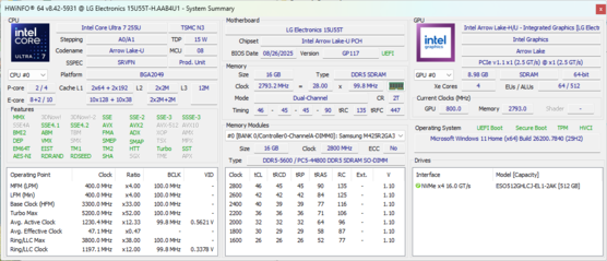 | LG Gram 15U55T Ultra 7 255U, Graphics 4-Core iGPU (Arrow Lake), , IPS, 1920x1080, 15.6" | LG Gram SuperSlim (2023) i7-1360P, Iris Xe G7 96EUs, SK hynix PC801 HFS001TEJ9X101N, OLED, 1920x1080, 15.6" | Lenovo IdeaPad Slim 3 15IRH10R Core 5 210H, UHD Graphics Xe G4 48EUs, Micron 2500 1TB MTFDKBA1T0QGN, IPS, 1920x1200, 15.3" | HP Envy x360 15 fe1071cl Ultra 7 155U, Graphics 4-Core iGPU (Arrow Lake), Samsung PM9C1 MZVL81T0HELB-00BTW, IPS, 1920x1080, 15.6" | Asus VivoBook S15 K5504 i9-13900H, Iris Xe G7 96EUs, WD PC SN560 SDDPNQE-1T00, OLED, 2880x1620, 15.6" | Dell Inspiron 15 Plus i5-11400H, GeForce RTX 3050 4GB Laptop GPU, Micron 2450 512GB MTFDKBA512TFK, IPS, 1920x1080, 15.6" | |