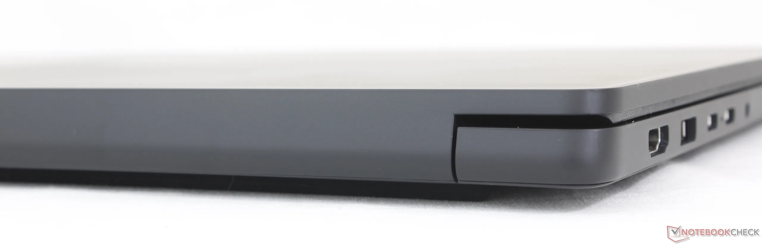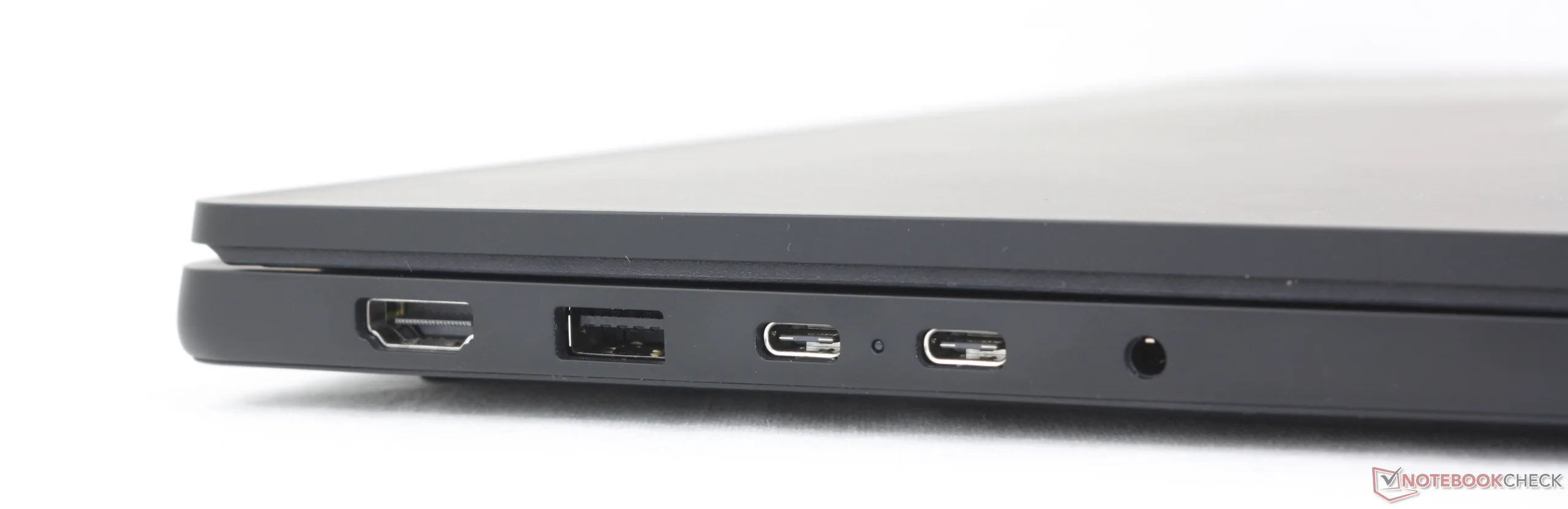Las opciones de puerto son esencialmente idénticas a las del 2025 HP Envy x360 15 pero sin soporte oficial Thunderbolt. Por desgracia, la carga debe realizarse a través del borde izquierdo ya que no hay puertos USB-C a lo largo del borde derecho.