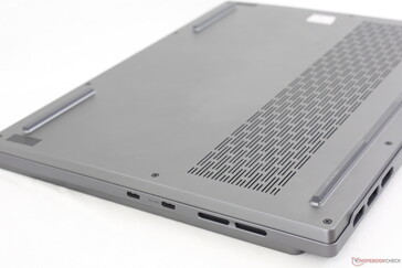 Las opciones de puertos son muy similares a las del Blade 14 aunque con un posicionamiento muy diferente. Encontramos que la posición es desfavorable en el Legion Slim 5 ya que los puertos no están distribuidos uniformemente y la mayoría están en la parte trasera incluyendo los puertos USB-A. El modelo desafortunadamente carece de soporte USB4 y Thunderbolt.
