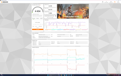 La GPU Nvidia se estabilizaría a 2505 MHz, 70 C, y 72 W cuando se ejecuta Witcher 3 en modo Rendimiento frente a 2460 MHz, 62 C y 56 W en modo Equilibrado. El consumo de la GPU puede acercarse a los 92 W en su pico máximo, frente a su objetivo TGP de 100 W.