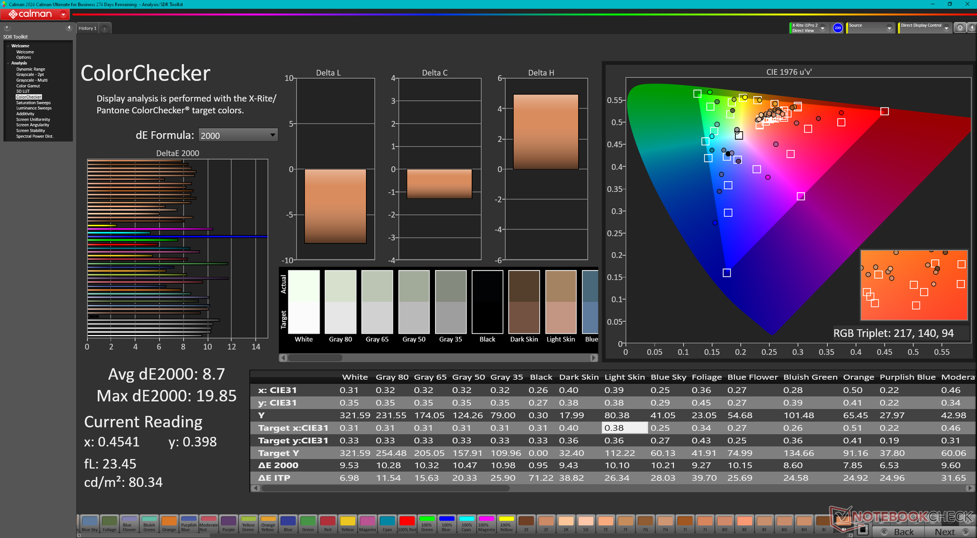 ΔE ColorChecker Calman: 8.7 | ∀{0.5-29.43 Ø4.78}