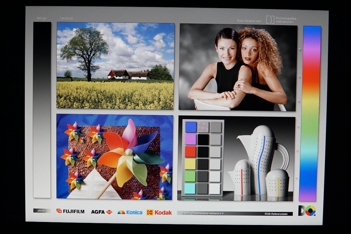 Por el contrario, la pantalla no es adecuada para tareas gráficamente exigentes. Incluso después de la calibración, hay una desviación de color visible con imágenes que siempre aparecen un poco grises y pálidas. Esto puede ser suficiente para una colección privada de fotos y también para películas y juegos. Sin embargo, si desea editar y optimizar gráficos e imágenes, la pantalla está completamente fuera de lugar.