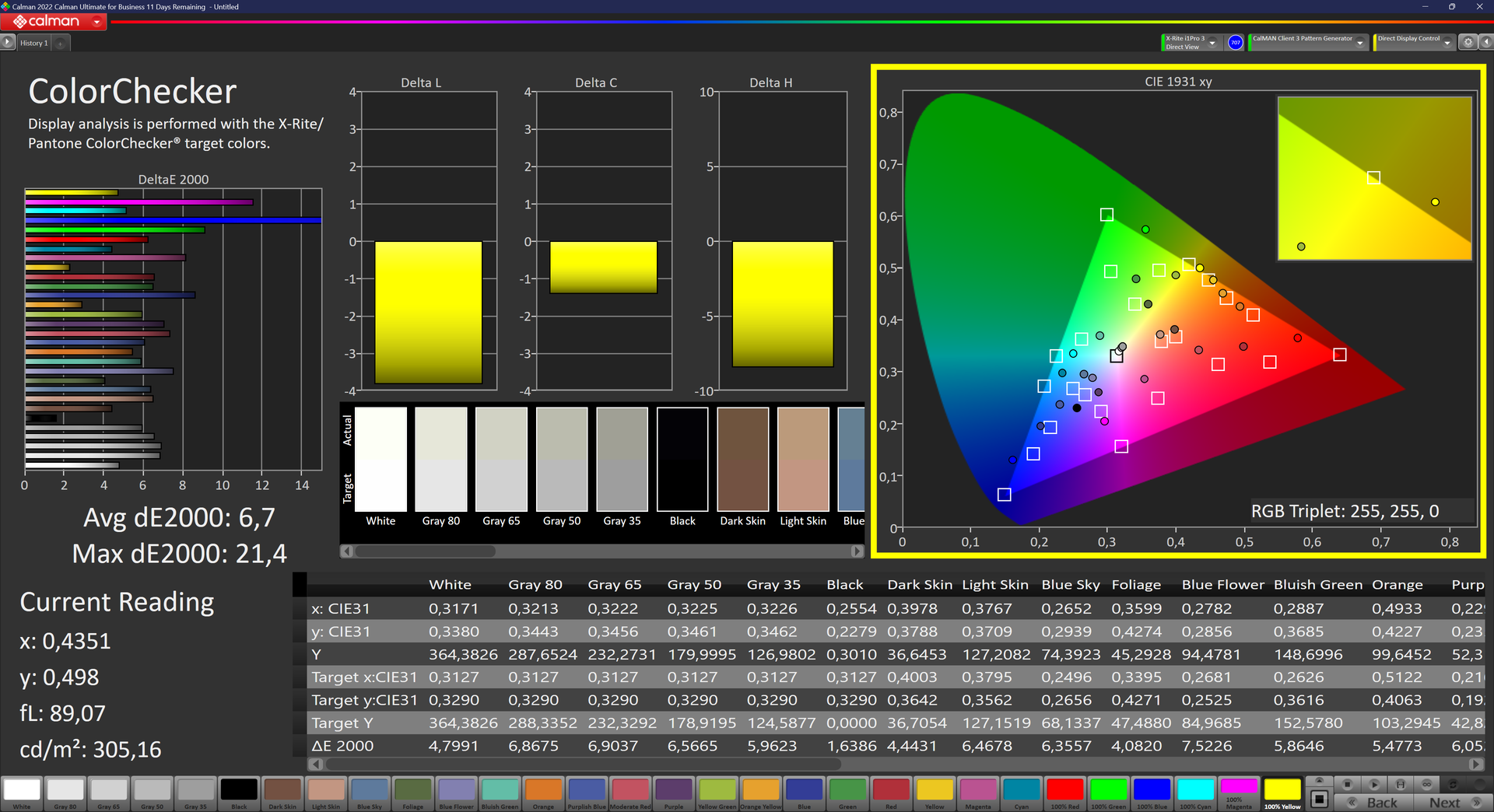 ΔE ColorChecker Calman: 6.7 | ∀{0.5-29.43 Ø4.78}