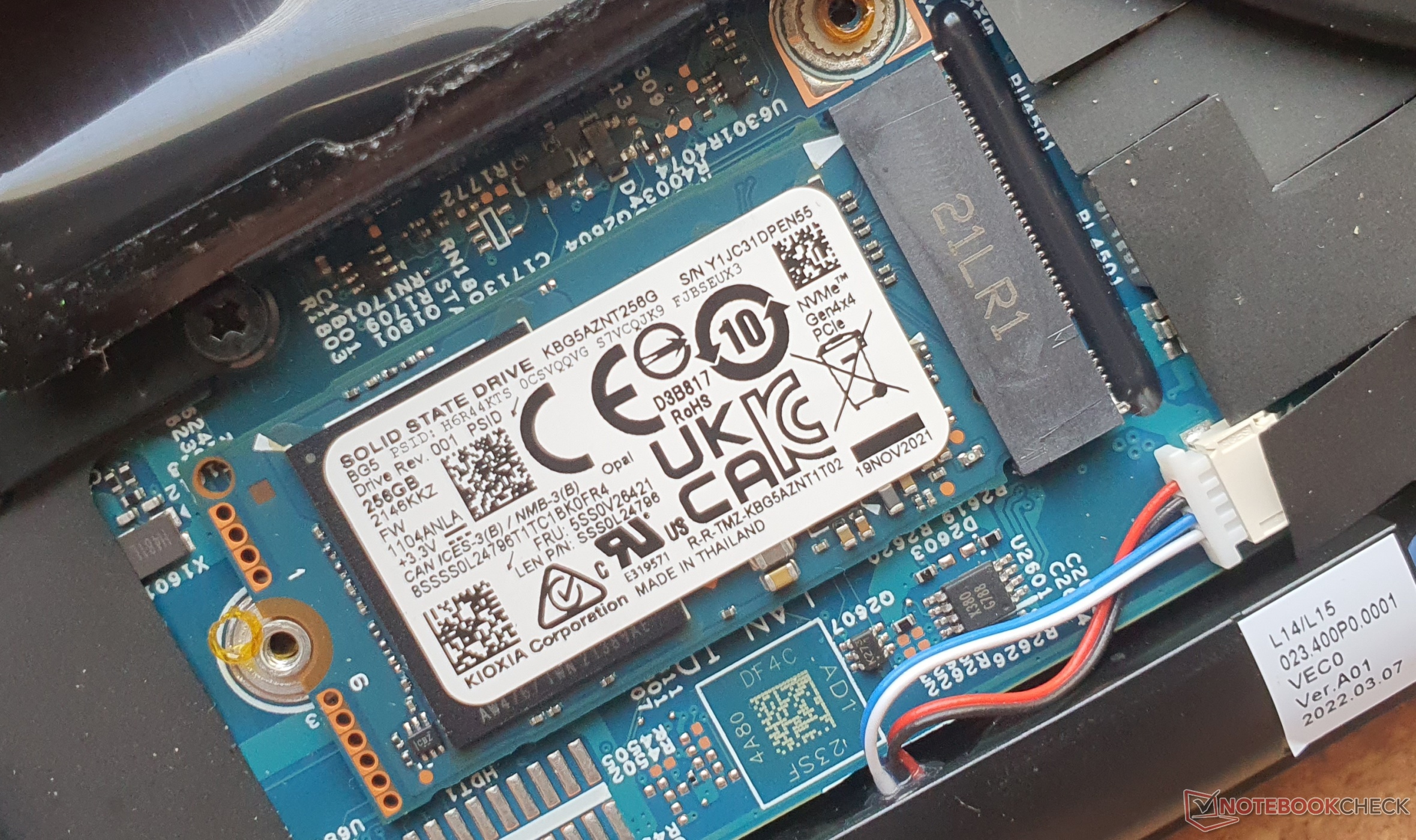 En nuestra opinión, hay muchas cosas buenas en el interior: dos ranuras de RAM, un módulo Wi-Fi extraíble, una ranura M.2 libre para WWAN, un sistema de refrigeración de fácil mantenimiento y un SSD reemplazable. A diferencia de su predecesor, el L14 G3 utiliza un SSD con el factor de forma M.2 2242 más corto para acomodar la batería más grande (también reemplazable). Uno de los puertos USB-A está en una placa secundaria y, por lo tanto, también se puede sustituir si se rompe.