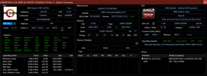 | 86.1 % v7 (old) | 08/2021 | Lenovo ThinkPad L14 G2 AMD R7 PRO 5850U, Vega 8 | 1.7 kg | 20.4 mm | 14.00" | 1920x1080 | |