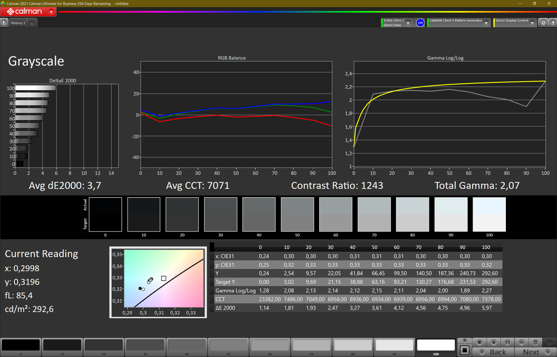 Nuestro modelo de pruebas viene con un display IPS Full HD mate (1,920 × 1,080) con un ratio de aspecto 16:9, aunque el ThinkPad L13 ya ha dado el salto a un display 16:10. La pantalla se ve suficientemente nítida a esta resolución y es capaz de producir un negro relativamente saturado gracias a su gran contraste de 1,219:1 y un bajo nivel de negro de 0.24 nits. Con 7.071K, el punto blanco no alcanza el valor óptimo de 6.500K.